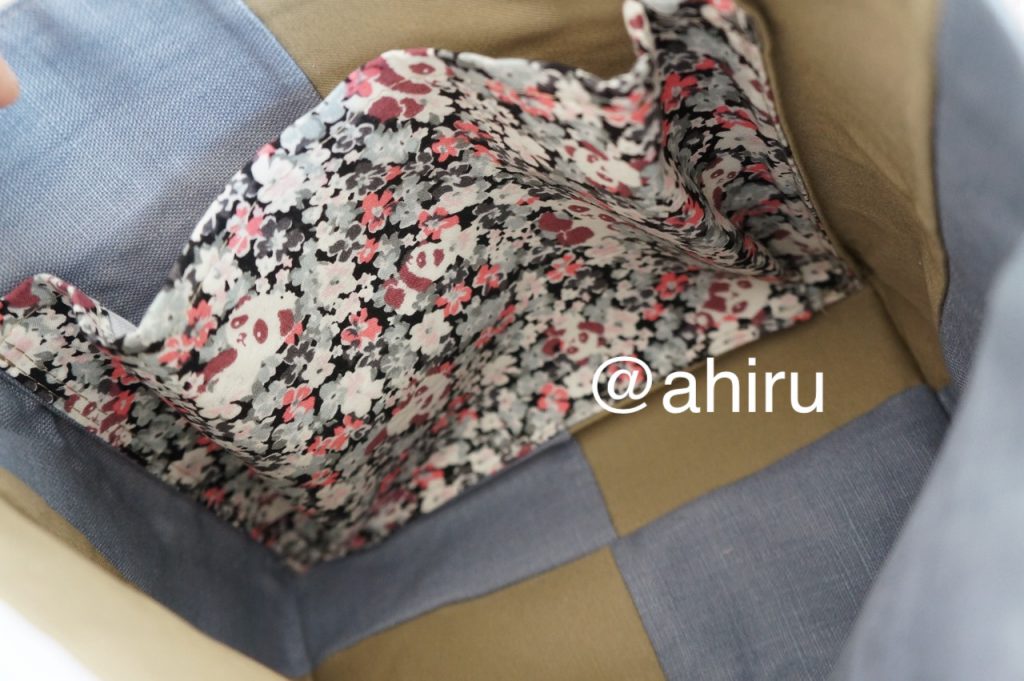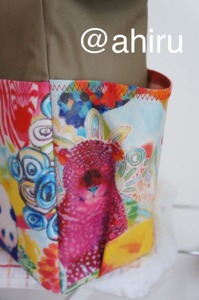 渋めグレーの内側(た、たぶん…詳細忘れたけど…)、つぎはぎの仕方が斬新(どうしても派手にしたい癖…)。ポッケは花パンダ。