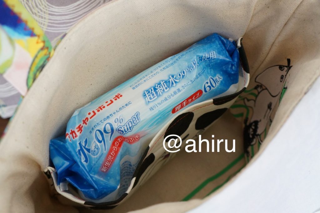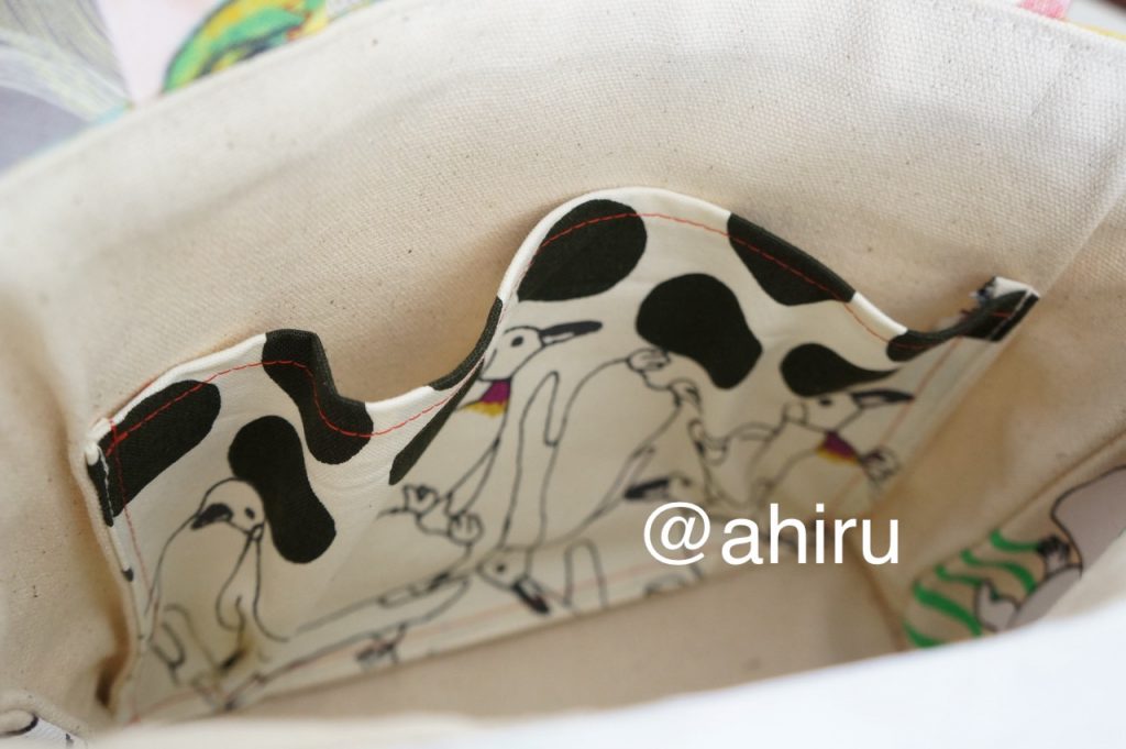 サファリポーチの内側もペンギン。というかムーミンエコバッグをリメイクしてるんだなこれ。忘れてたけど。