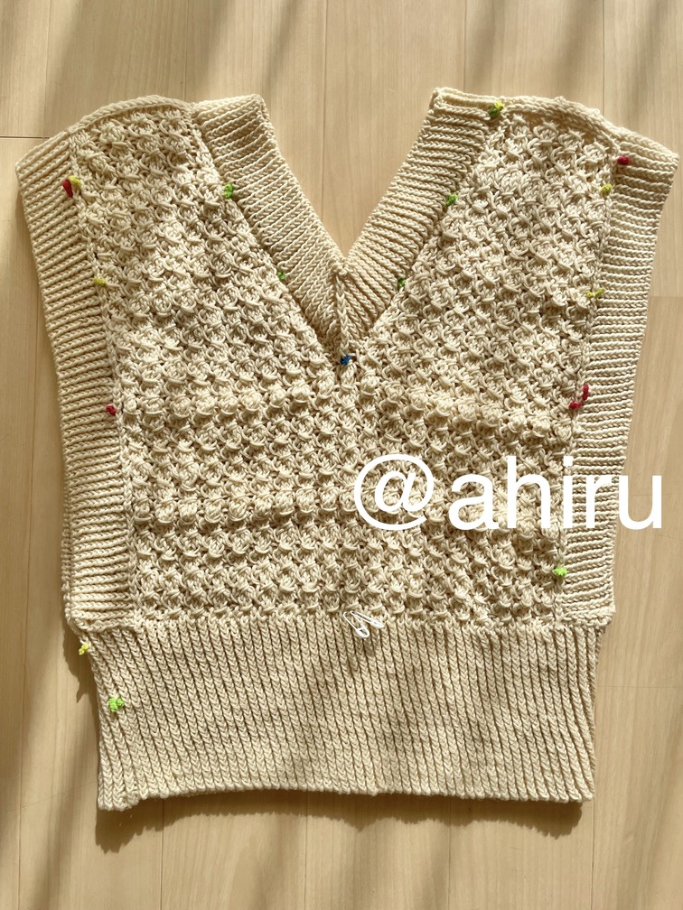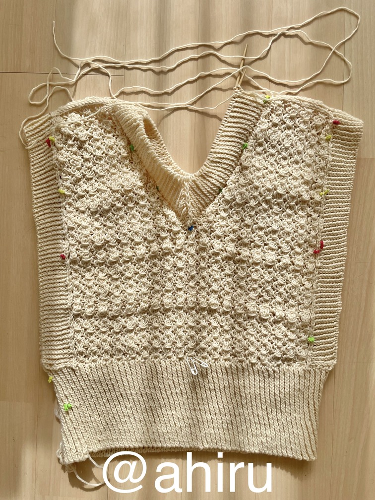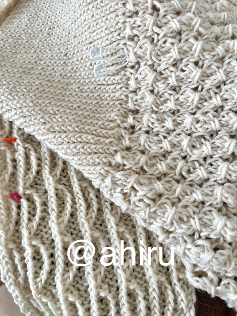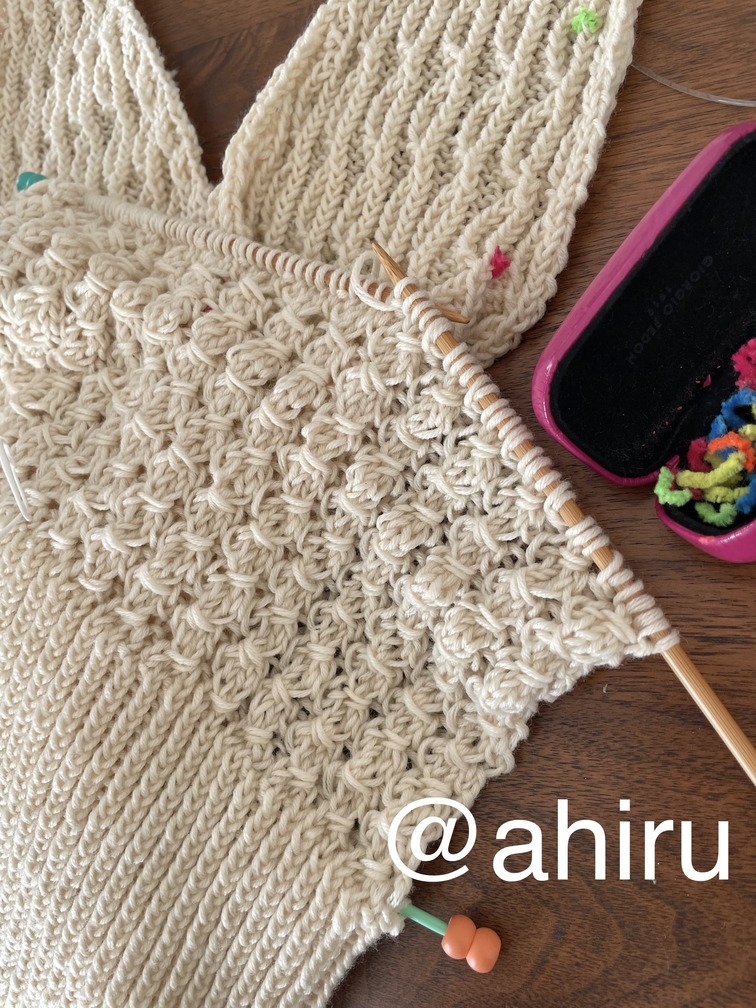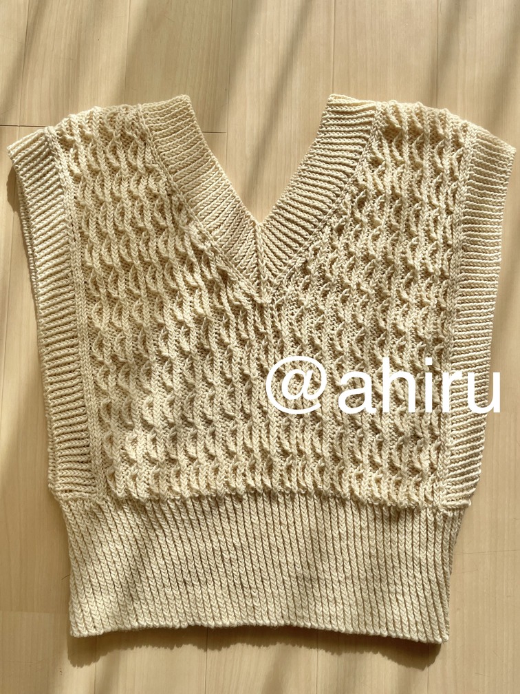 これも、4号針の細さでセーターを頑張ったというのに、同じく暑すぎて全く着ない年も多いいです…。肩周りがデザイン的にどうしてもきつくて動きづらく(DXが騎士候補生の鎧を嫌がった気持ちってきっとこれ)(急なランドリ)。でも特殊な編み方してるからほどくのも一苦労だし…ほどいてももう編まない気がする…。