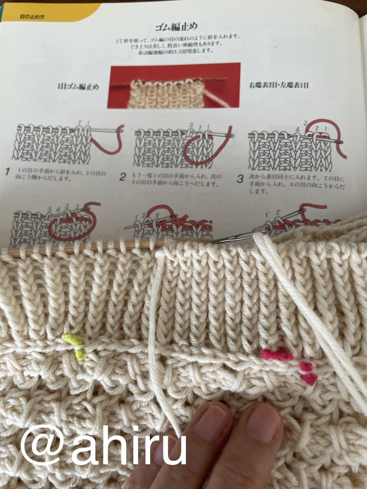 苦手だったゴム編み止めも、針を分けることで綺麗にできるようになりました。
